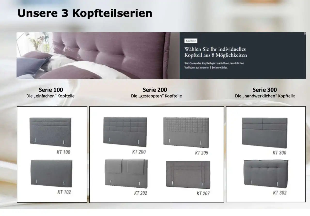 Wählen Sie aus vielen Kopfteilen, Füßen und Stoffen aus