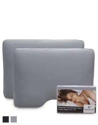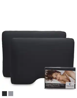 Für unsere innovativen Kissen der Marke Third of Life haben wird spezielle Kissenbezüge von einem Markenhersteller in Österreich parat. Sie bestechen durch perfekten Fit, höchste Elastizität und Feinmaschigkeit sowie eine Top-Qualität der eingesetzten Materialien. Der Bezug besteht aus 92% der feinsten langstapeligen Mako-Baumwolle mit gasiertem Garn sowie 8% Elastan und ist chlor- und formaldehydfrei. Mit 240 gr/m² weist es 50% mehr Warengewicht auf als herkömmliche Bezüge und ist dadurch sehr blickdicht, strapazierfähiger und bügelfrei.